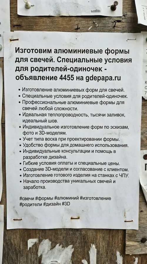 — Сынок, ты видел, сколько сейчас алюминий стоит? Ты видел, сколько стоит работа токаря-лекальщика, который эти половинки подгоняет вручную так, чтоб зазора не было? Хочешь дешево — иди в Китай закажи. Только потом не плачь, что свечи с облоем, воск течет и форму перекосило после третьей заливки.