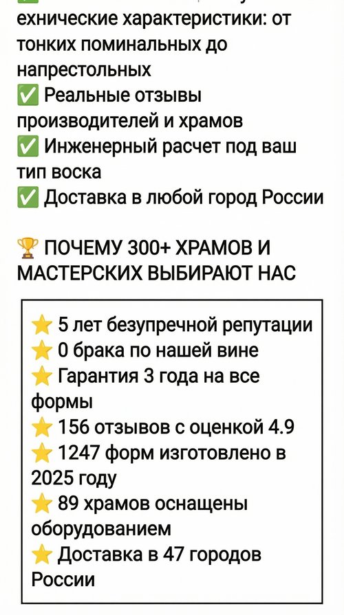 Работаем с храмами, монастырями, церковными мастерскими и частными мастерами по всей России.